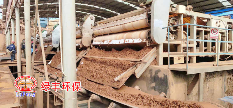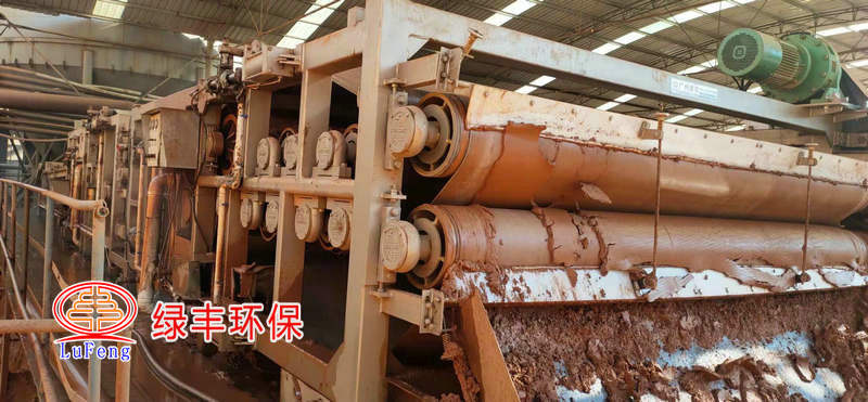 尾礦干排,選礦廢水處理,礦山污泥脫水機——綠豐新型多輥高速脫水機,業(yè)主指定機型,處理量大,產(chǎn)量高,泥餅含水率比傳統(tǒng)機型再降7%,投資成本再省30%,每小時處理量達(dá)200 m3/h ,18米長,4條濾帶+11條擠壓輥+2組對壓